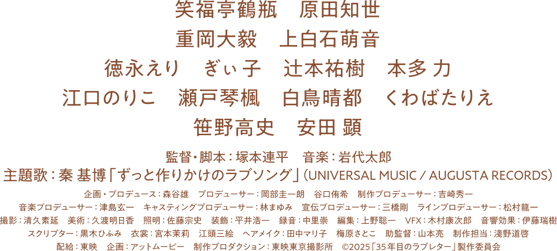 どんな時も寄り添い支えてくれた皎子へ感謝のラブレターを書きたい。定年退職を機に保は一大決心し夜間中学に通い始める。担任の谷山恵先生のじっくりと粘り強い教えや年齢・国籍も異なる同級生たちと共に学ぶ日々で少しずつ文字を覚えていく保。だが老齢のため物覚えも悪く、気付けば5年以上の月日が経過した頃、一字また一字と書いては消しまた書くひたむきな保と、それを見るともなく見守る皎子は結婚35年目を迎えていた。変わらない日常がいつまでも続くと思っていた。なかなか書き上げられずにいたラブレターがようやく形になろうとしていた頃、皎子が病魔におそわれて……。